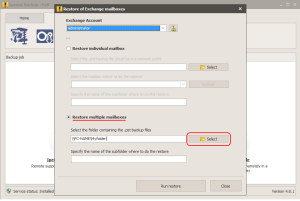 Now for the second type of Exchange restore offered by Iperius, or the “Restore to multiple mailboxes.”